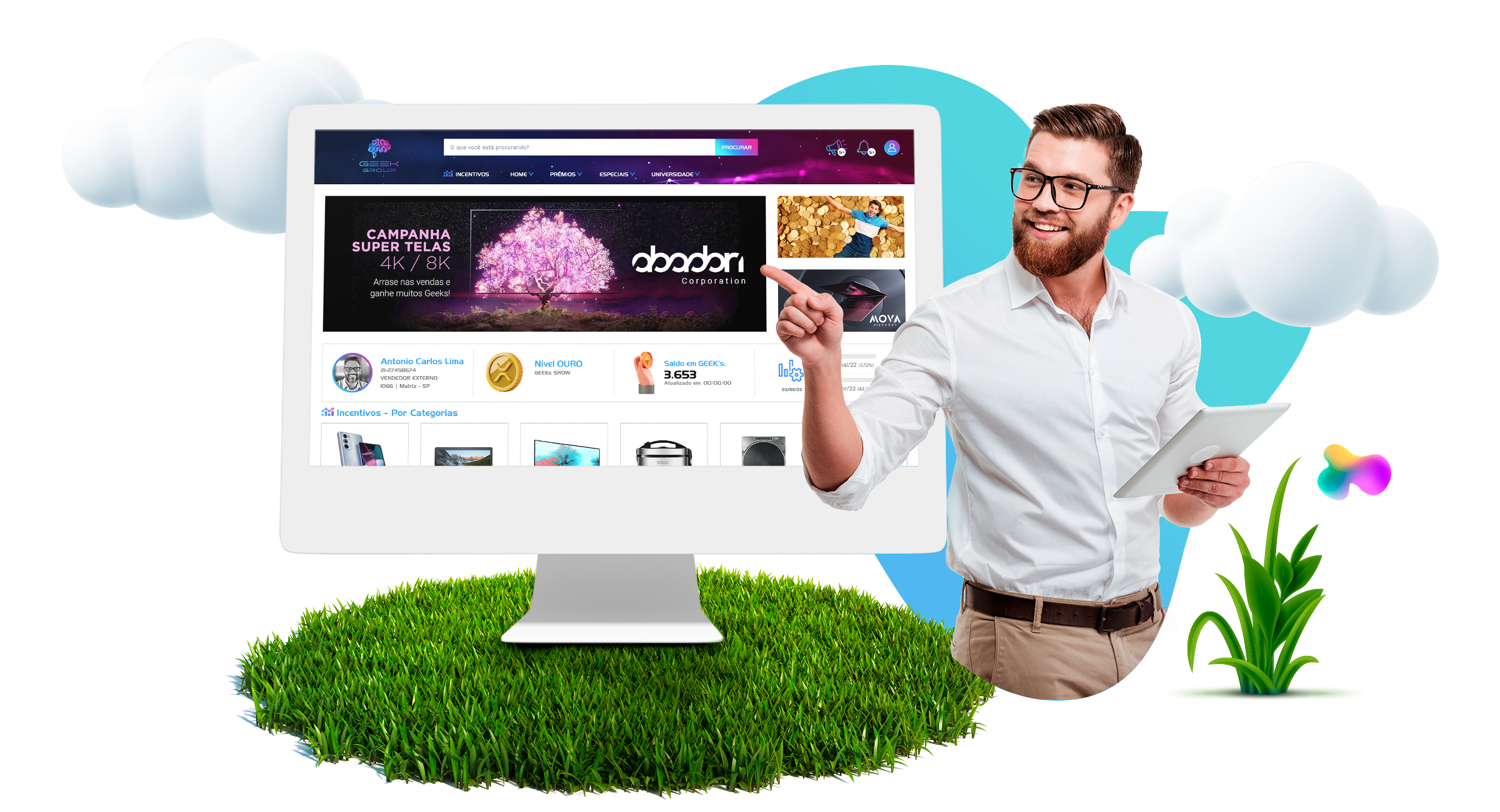 Ou seja, ajudamos nossos clientes a descobrir novos caminhos para o sucesso da superação das metas e engajamento de todo time, sempre de forma inteligente e estratégica, por meio da nossa Plataforma de Incentivo, Gamificação e Comunicação. E como não poderia deixar de ser, utilizamos Inteligência Artificial (IA) e trabalhamos com a inigualável experiência em Governança das Plataformas, realizada pelo time sênior da Geek Group.