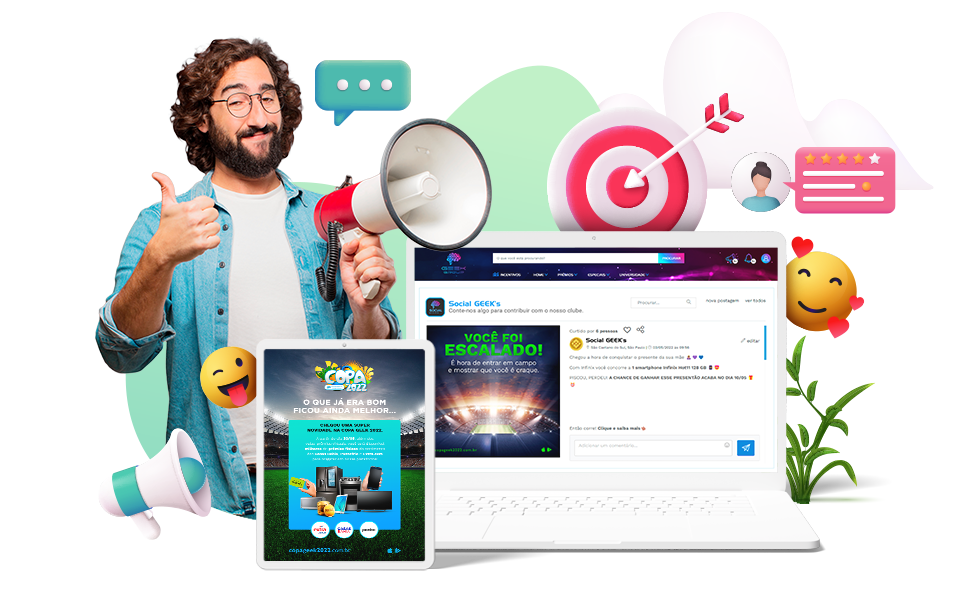 Oferecemos ferramentas para expandir ações de maneira engajadora, já que elas medem o sucesso do negócio por meio de um ecossistema para desktops e celulares. Navegue na plataforma e no APP, disponíveis nas lojas GOOGLE PLAY e APPLE STORE.